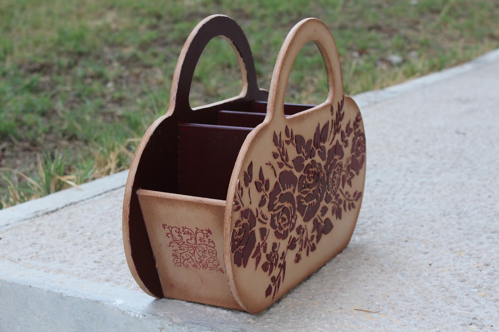 Bu çantaya her tekniği denedik evet her teknik çok güzel oluyor ama bu sefer rölyef stencil ve eskitme inanılmaz güzel oldu bizce.